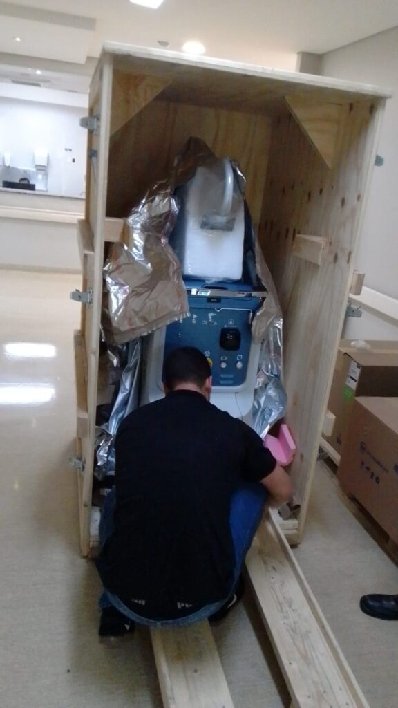 Um equipamento de altíssima complexidade e sensibilidade, que exige logística especializada, proteção correta e profissionais preparados em cada detalhe do transporte.